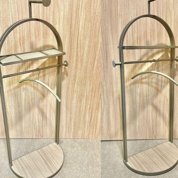Modelo con estructura en color nude, nogal y